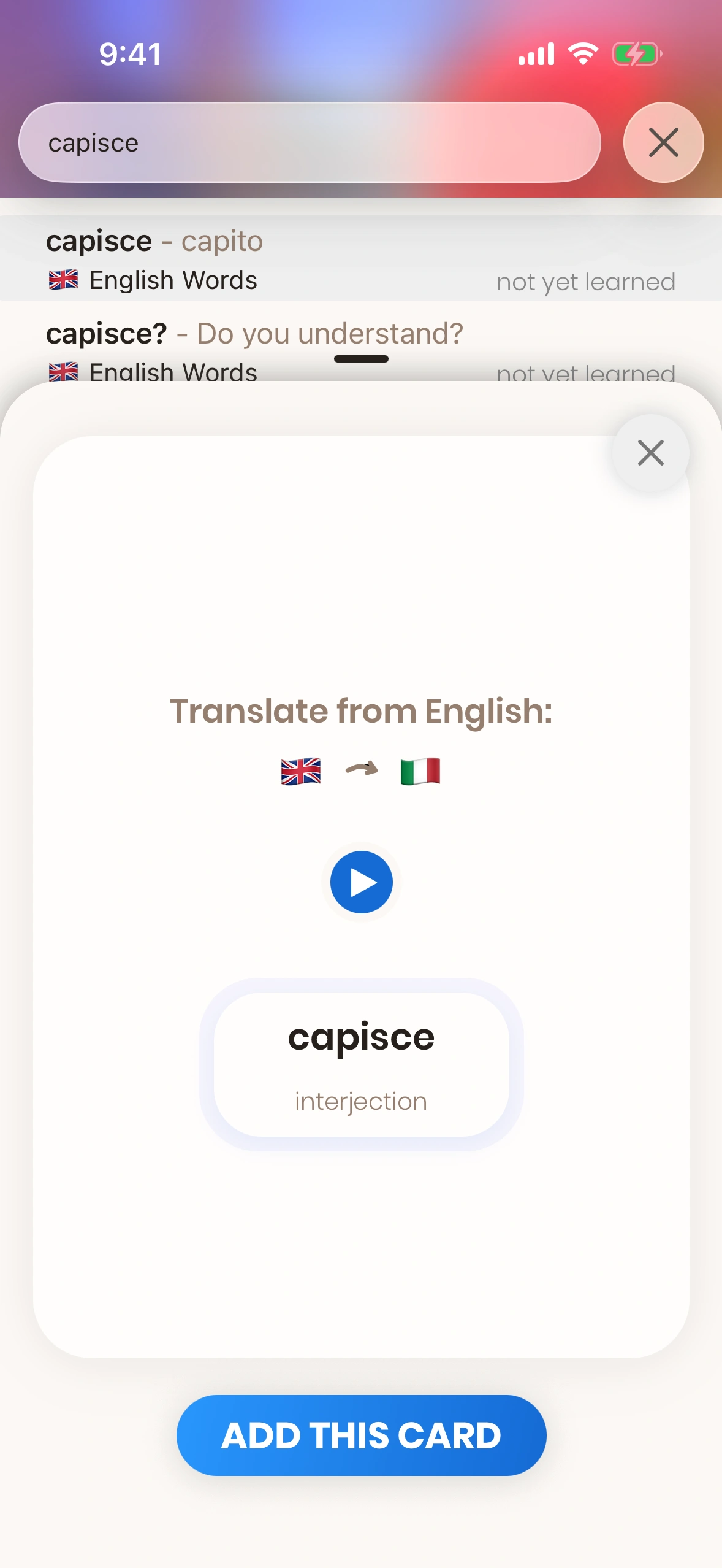 Just English lets you create your own cards too - but why not use the +30'000 high-quality cards that come with the app?