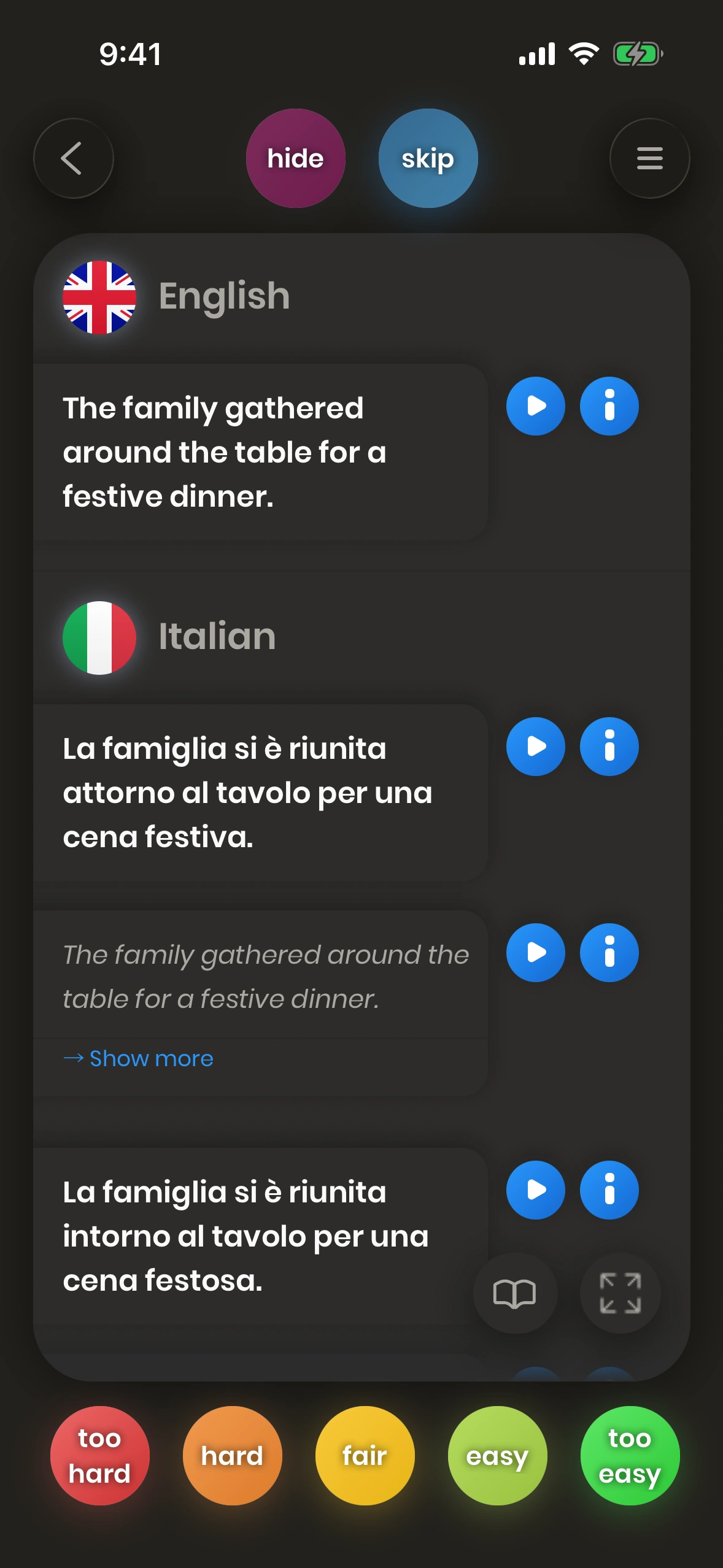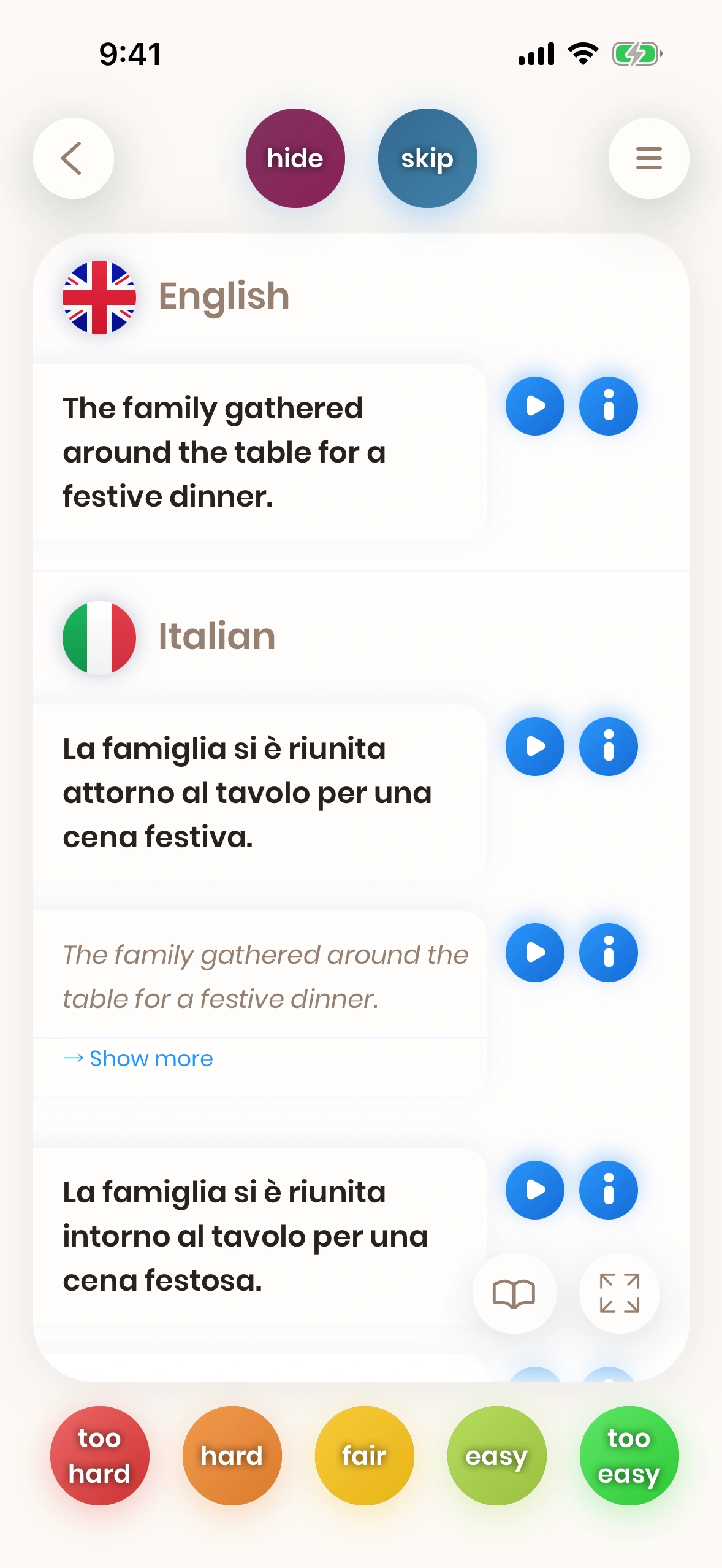 - The same word can have different translations - with Sentence Cards you practice which word to use in which context.