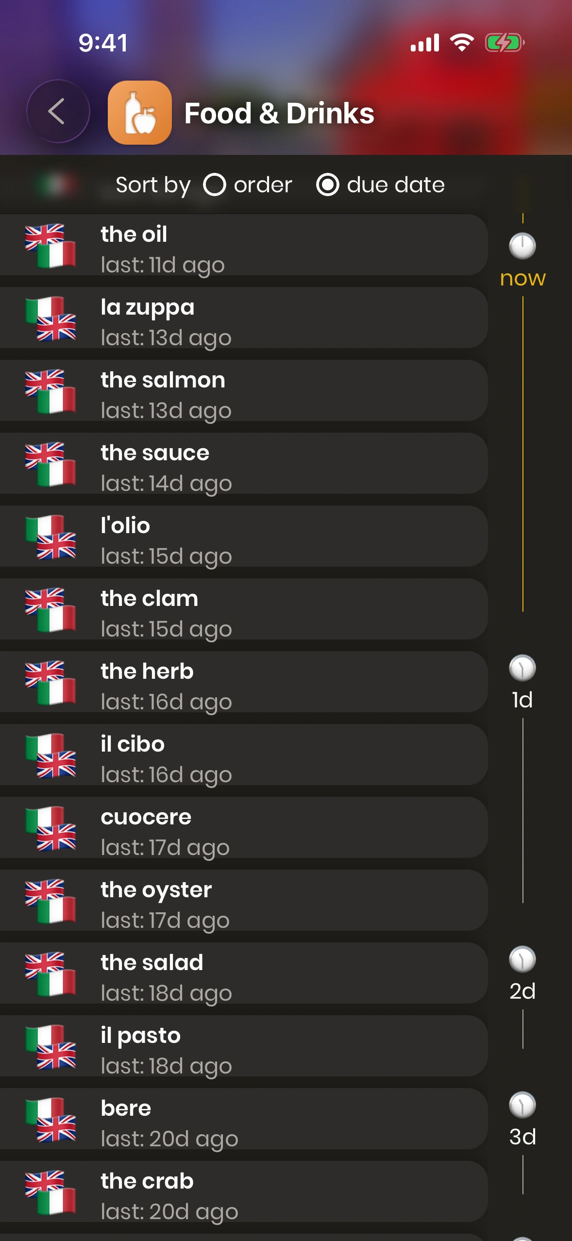 You can also tap a card in the list to view it, or to add it manually to the learning queue.
