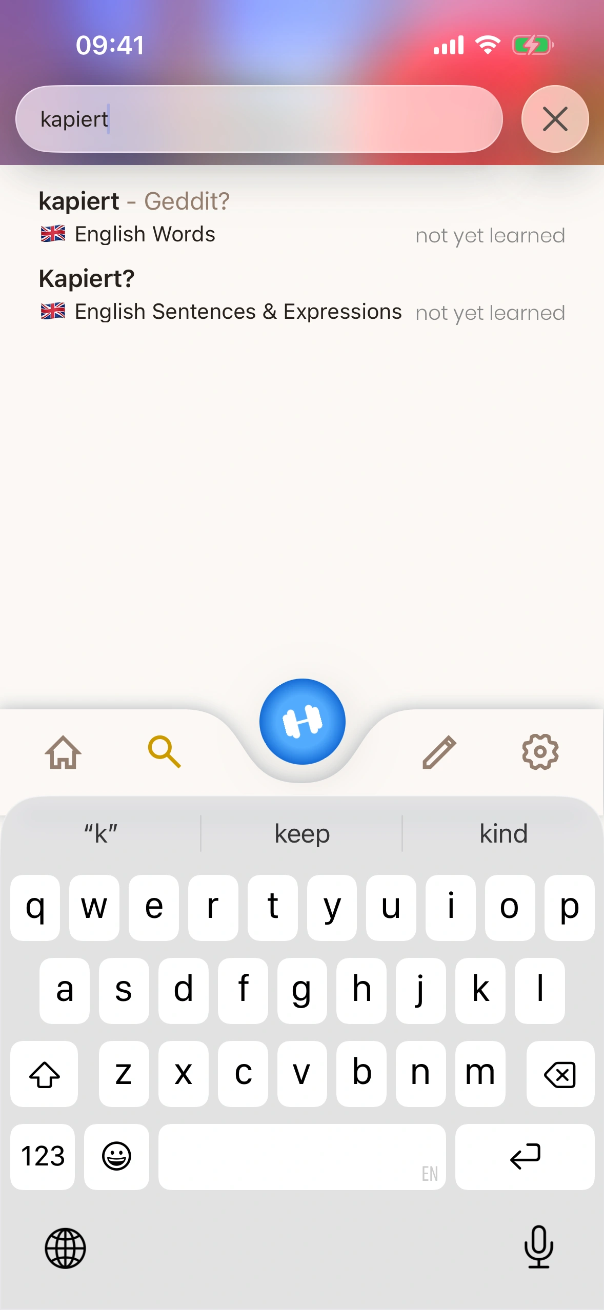 Tippe auf ein Suchergebnis. In dem Popup kannst du die Karte deiner Lern‑Warteschlange hinzufügen.