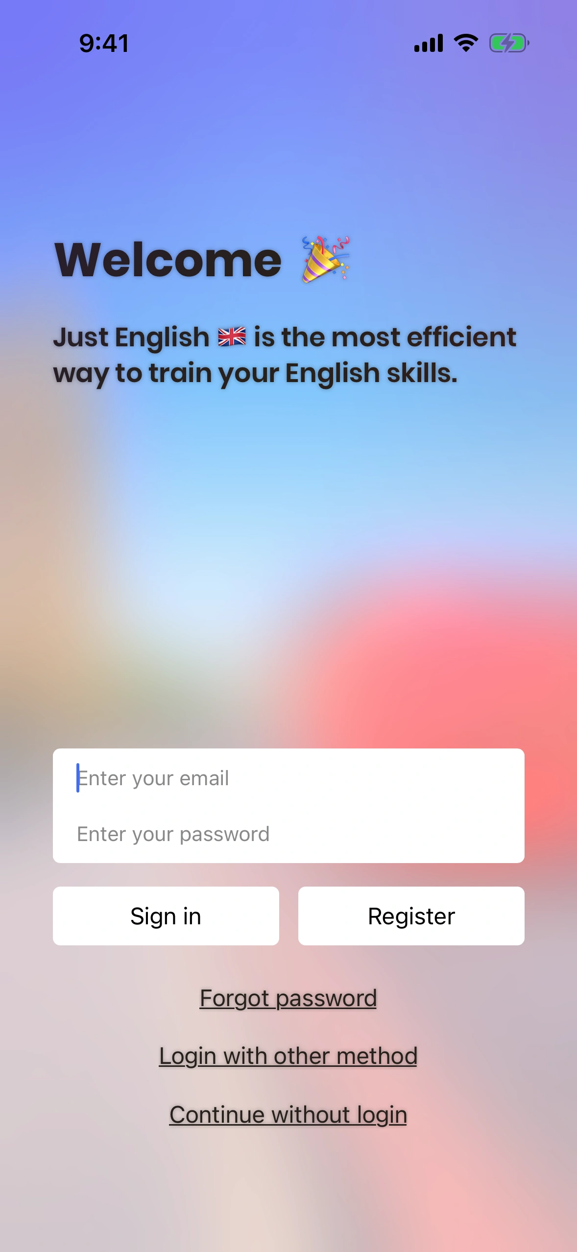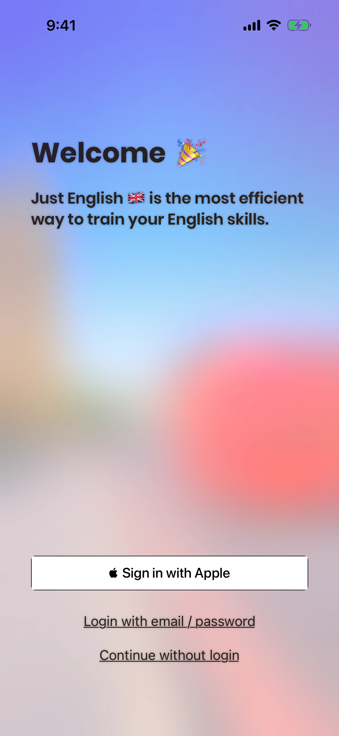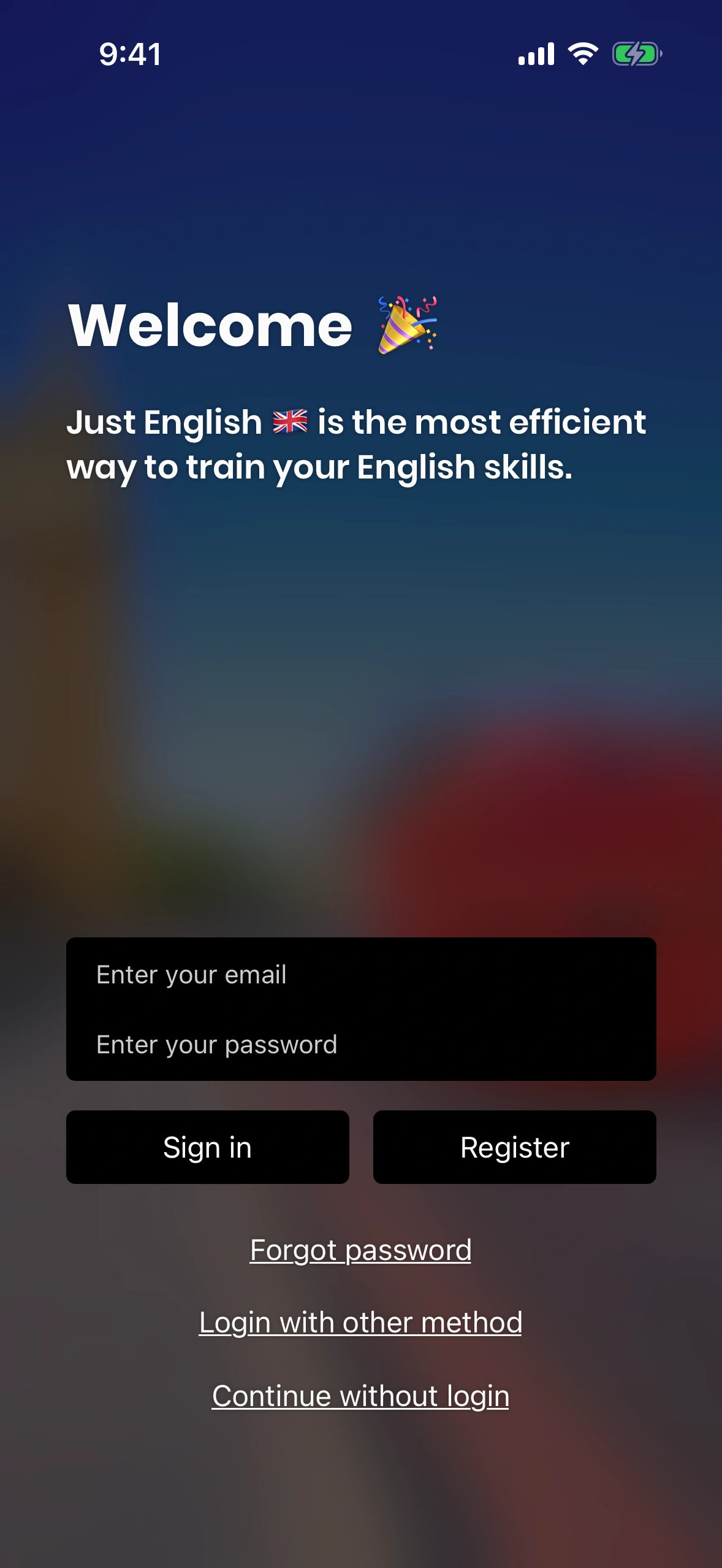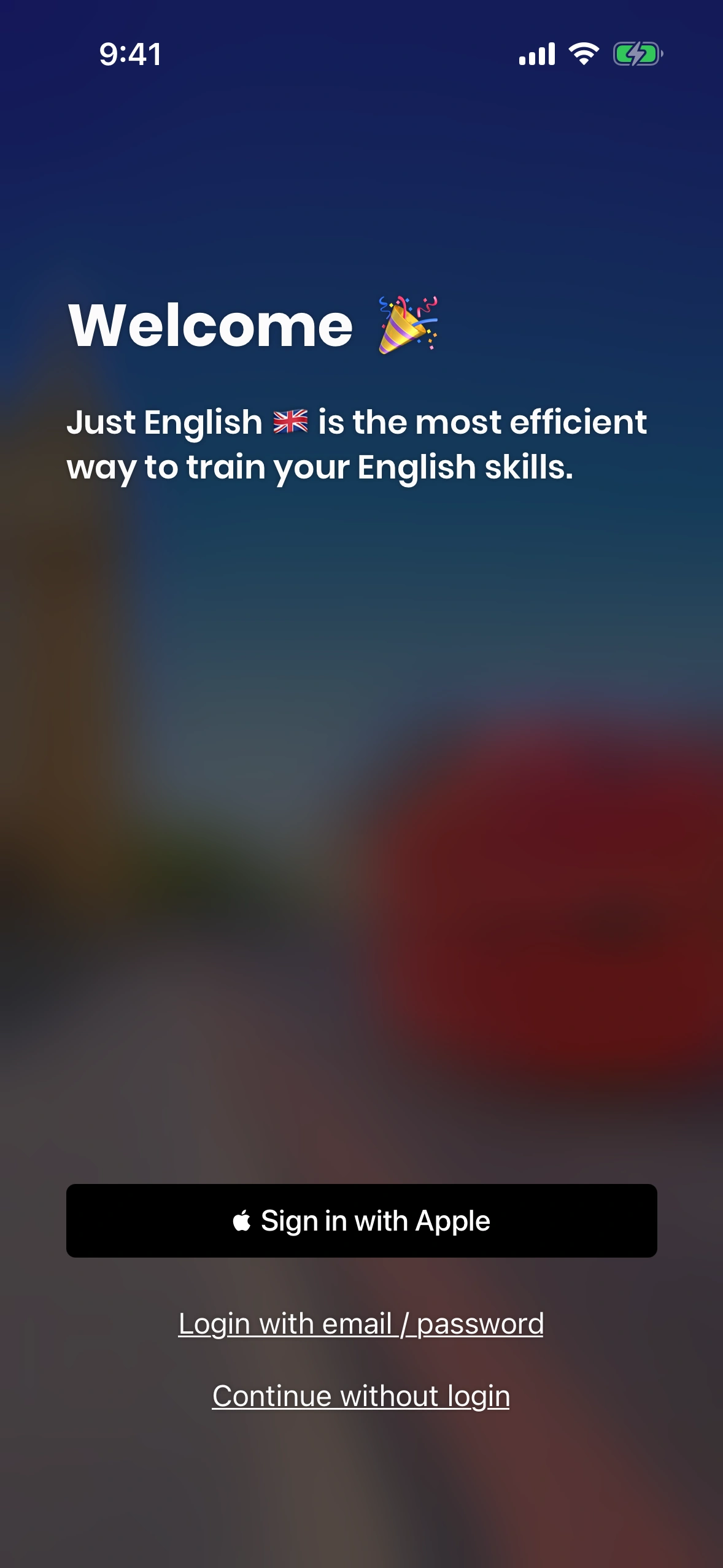 Just English currently offers two ways to log in: