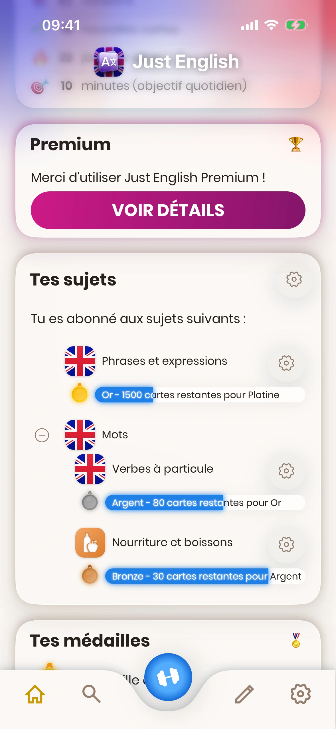- Objectif quotidien : Ici tu vois et modifies ton objectif quotidien. Appuie sur le crayon pour le modifier.