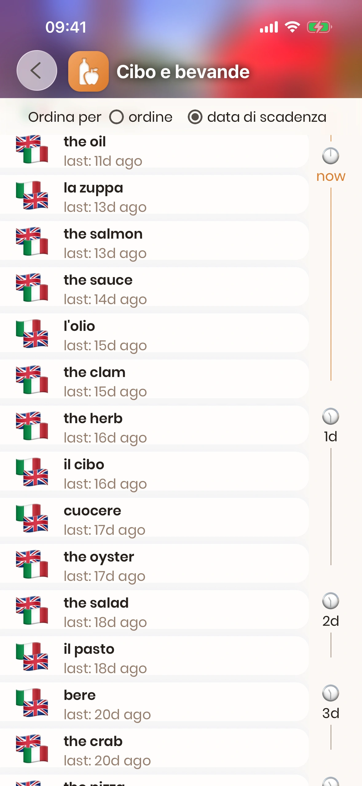 - "per data di scadenza" mostra le carte nell'ordine in cui dovrebbero essere ripassate da te — prima le carte che devono essere ripassate adesso, poi gradualmente quelle che devono essere ripassate in futuro.