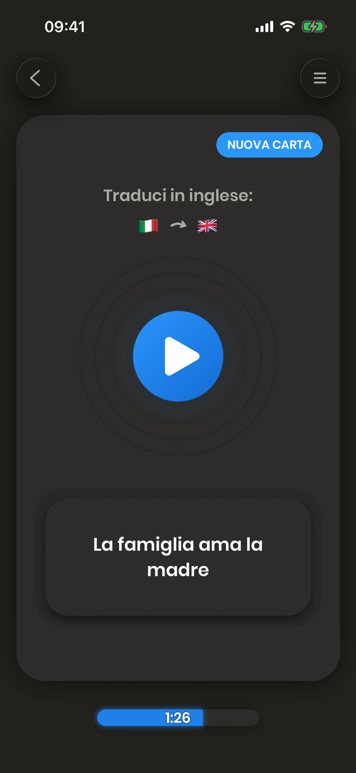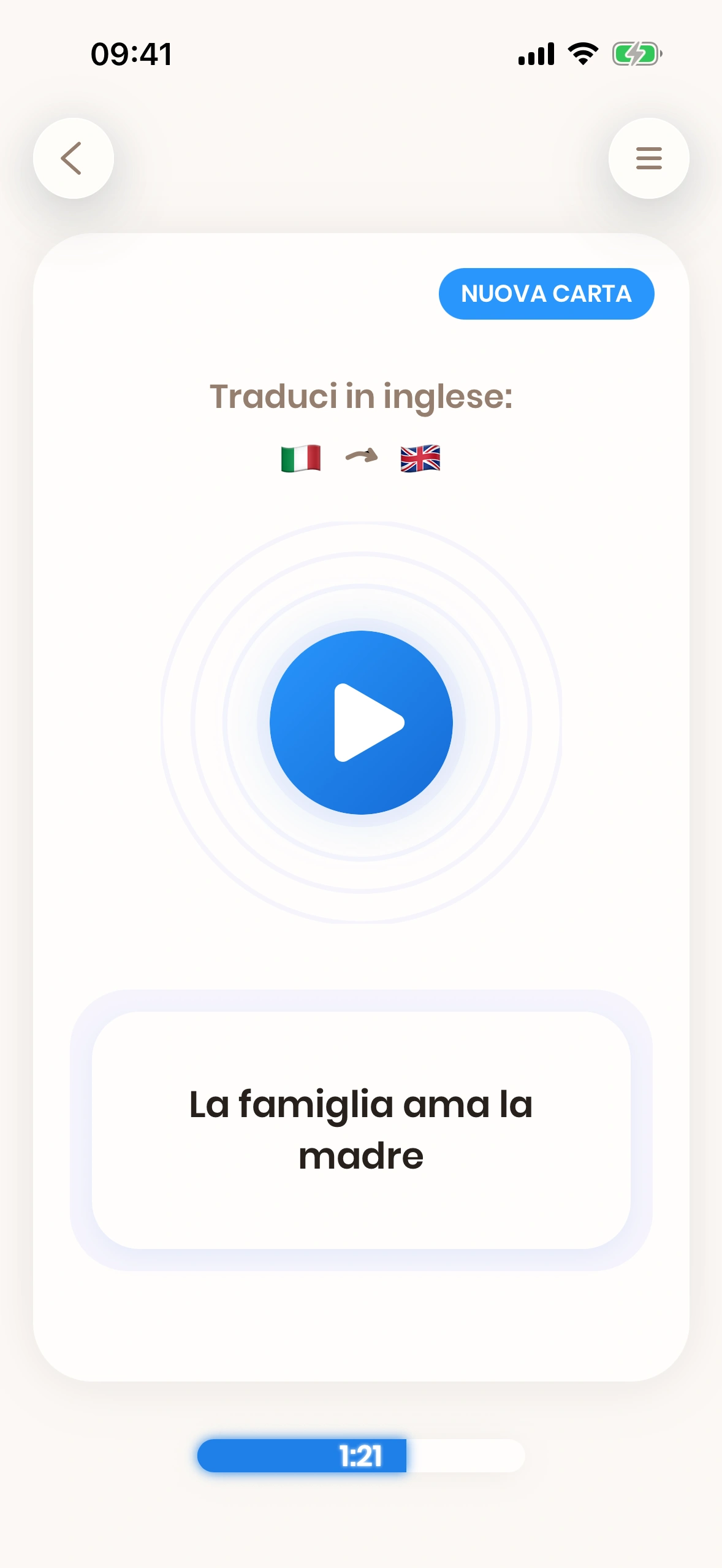 La barra di avanzamento mostra il tempo che hai già dedicato all'apprendimento oggi, nonché quanto tempo devi ancora studiare per raggiungere il tuo obiettivo quotidiano.